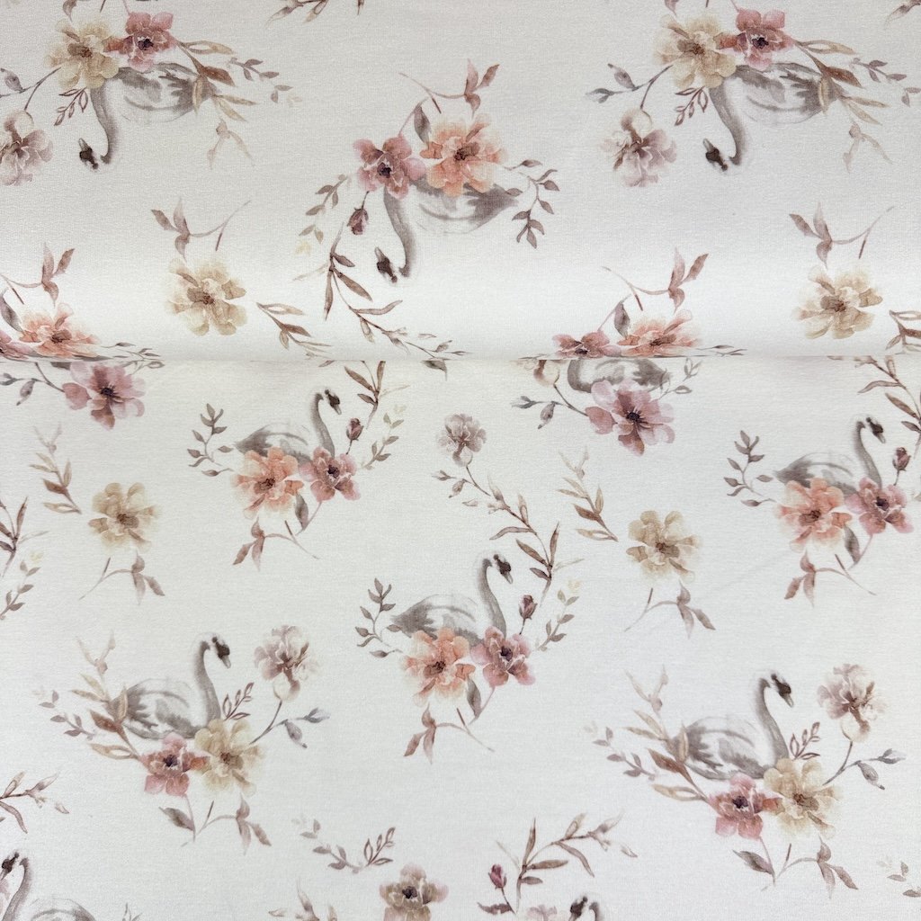 Teplákovina digital Organic - Labutě pudrové na máslovém
