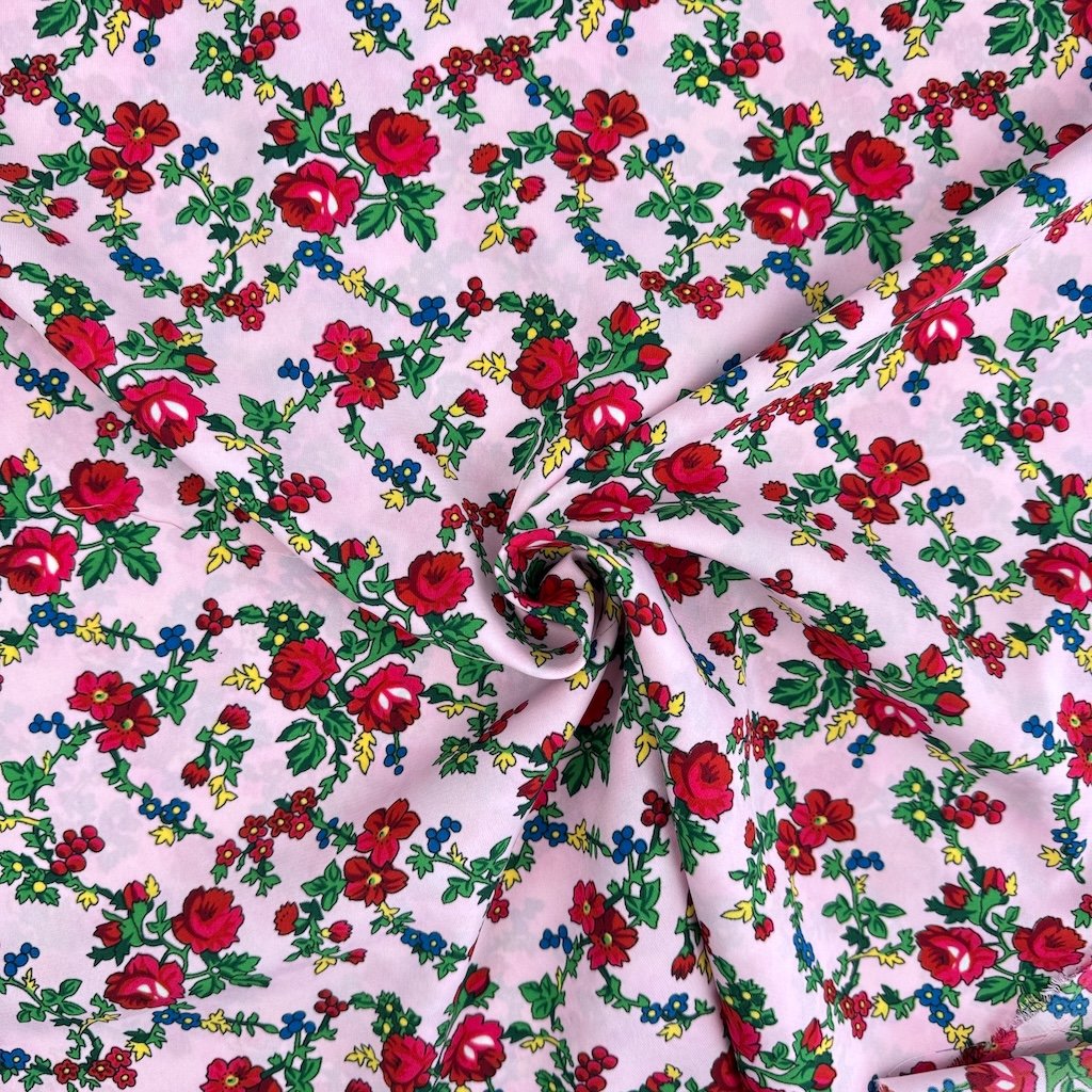 Folklorní tkanina TIBET folk pattern MK je splývavá, spadlá tkanina příjemná na dotek, v různých barevných provedeních. Látka s potiskem pestrobarevných drobných květů, gramáží 250 g/m2 a složením ze 100% polyesteru je ideální pro šití folklorních oděvů a doplňků.