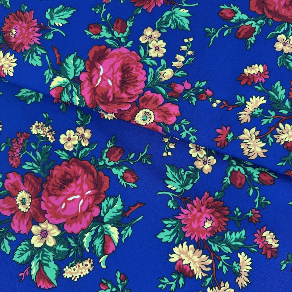 Folklorní tkanina TIBET lidový vzor je splývavá, spadlá tkanina příjemná na dotek, v různých barevných provedeních. Látka s potiskem pestrobarevných drobných květů, gramáží 250 g/m2 a složením ze 100% polyesteru je ideální pro šití folklorních oděvů a doplňků.