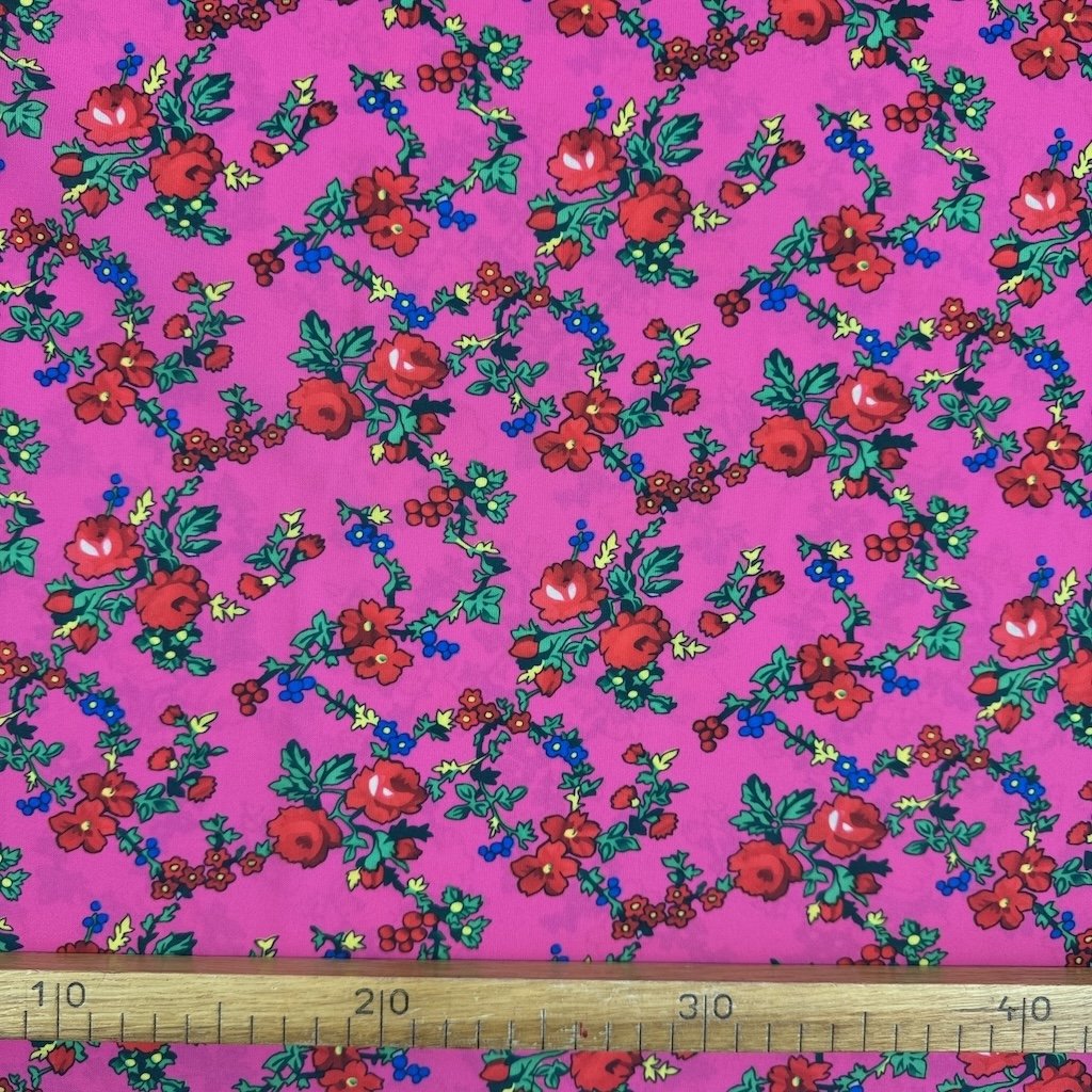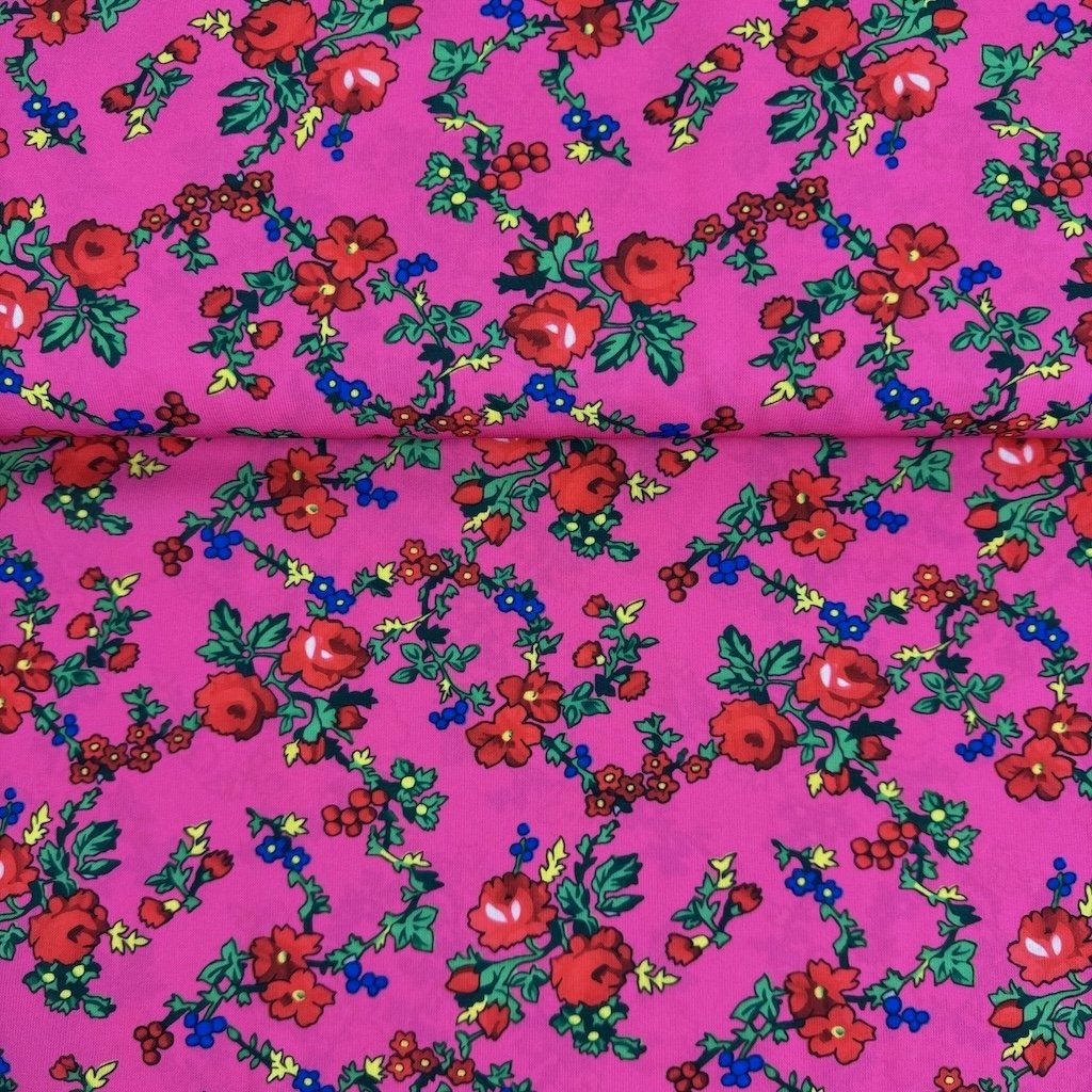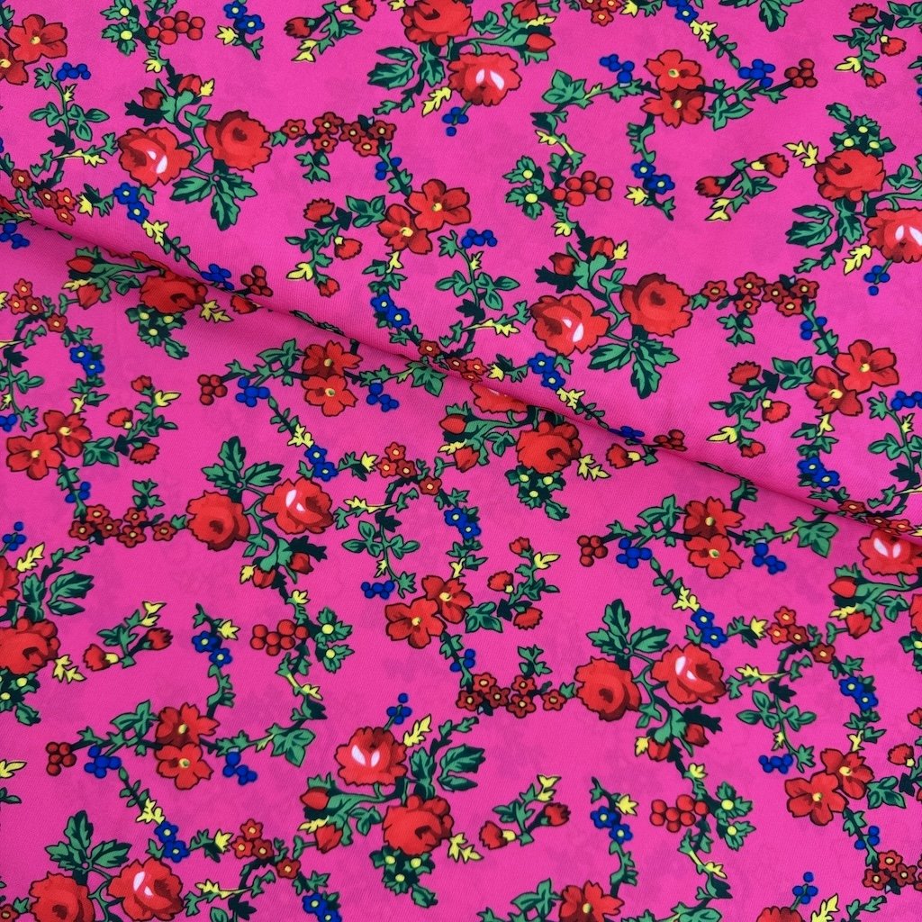 Folklorní tkanina TIBET lidový vzor je splývavá, spadlá tkanina příjemná na dotek, v různých barevných provedeních. Látka s potiskem pestrobarevných drobných květů, gramáží 250 g/m2 a složením ze 100% polyesteru je ideální pro šití folklorních oděvů a doplňků.