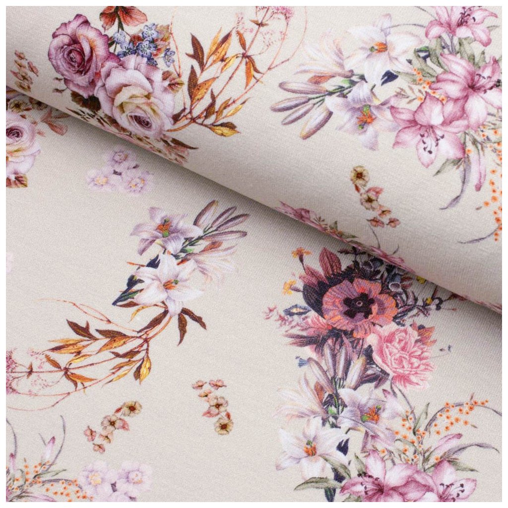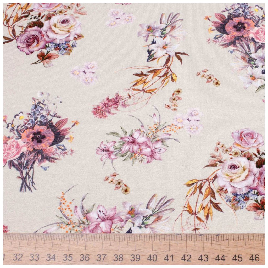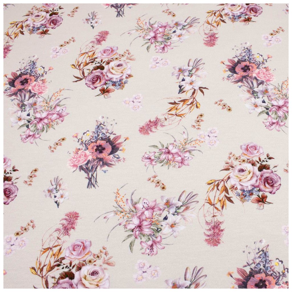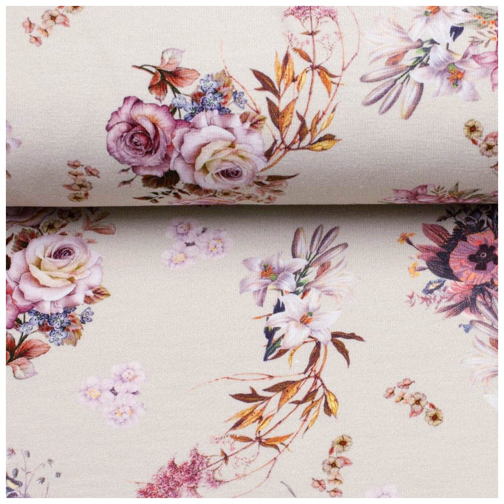 Tričkovina digital - Kytice růží na béžovém