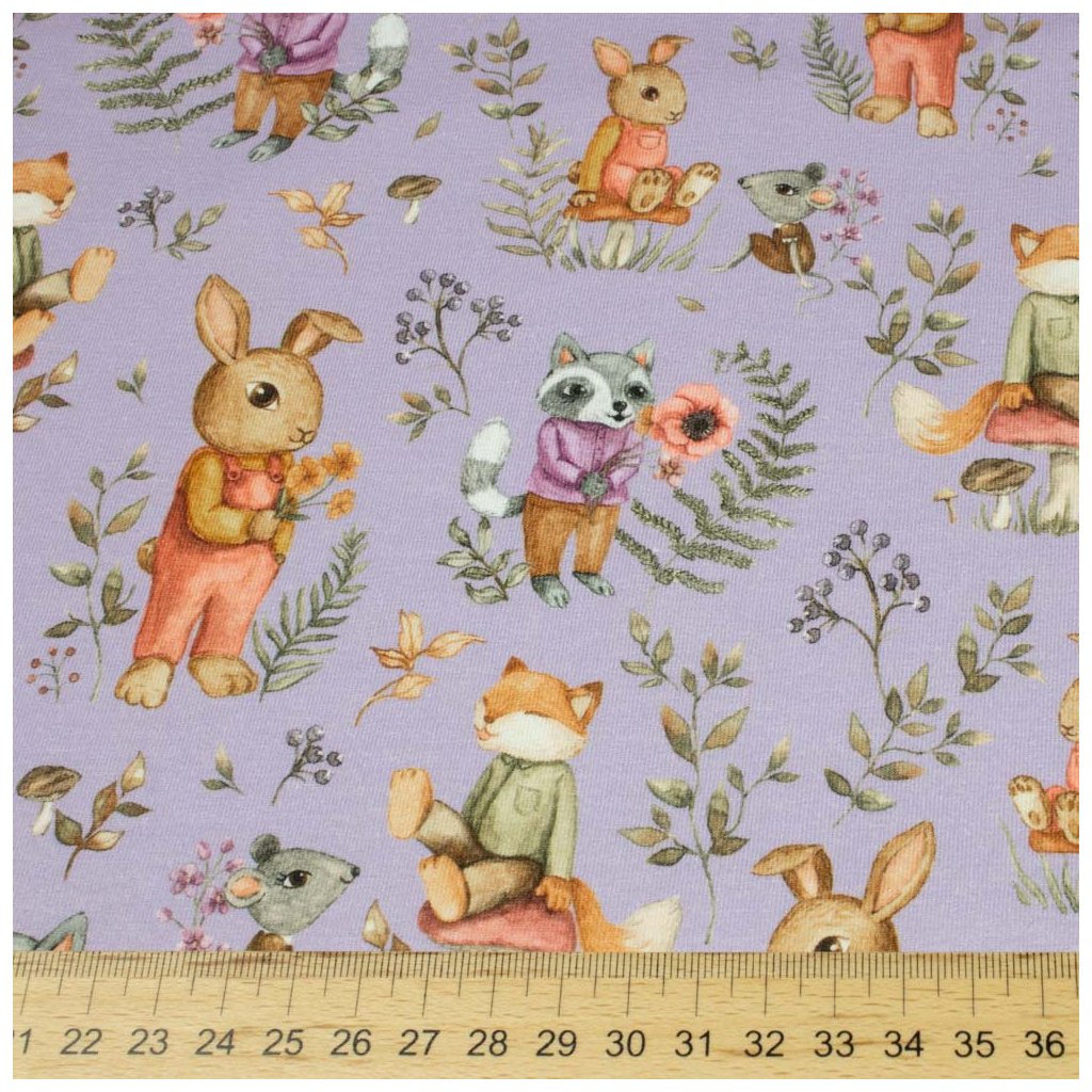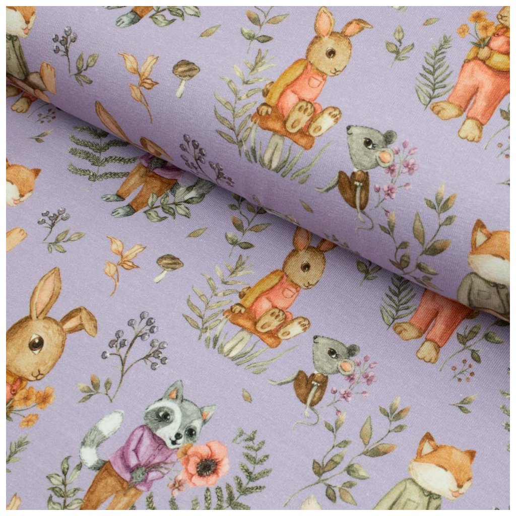 Tričkovina digital - Lesní zvířátka na fialovém