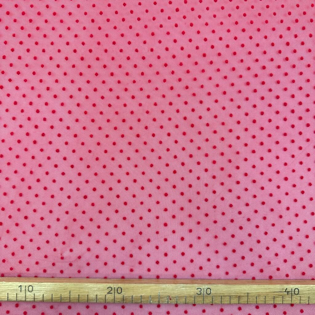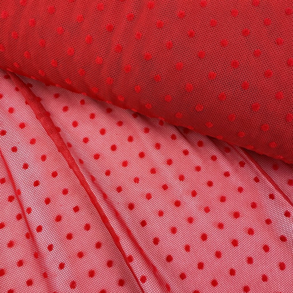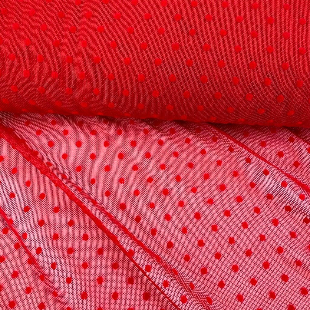 Tyl elastický "4-way" s tečkou - Červená