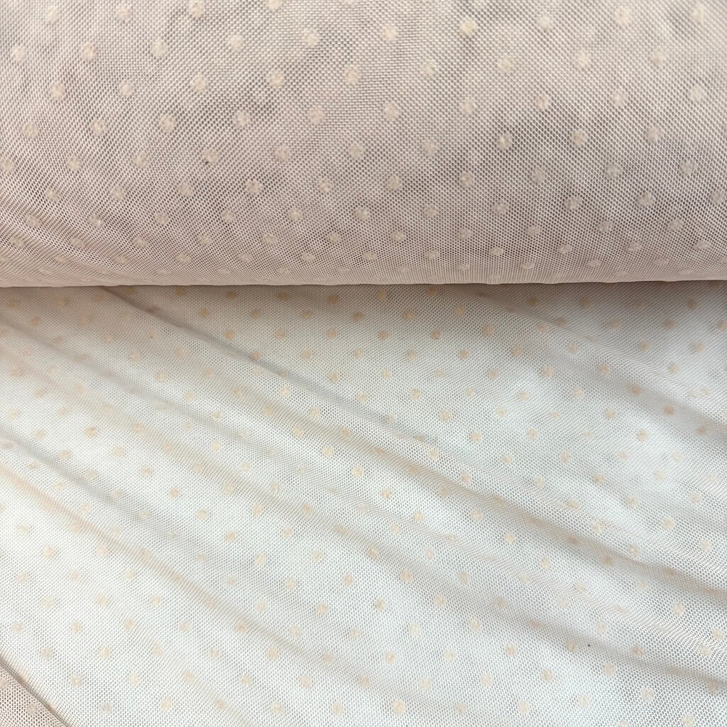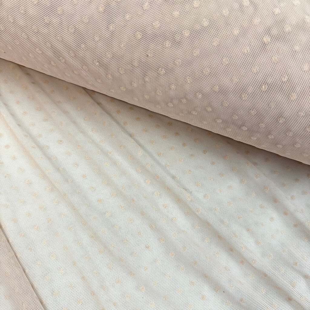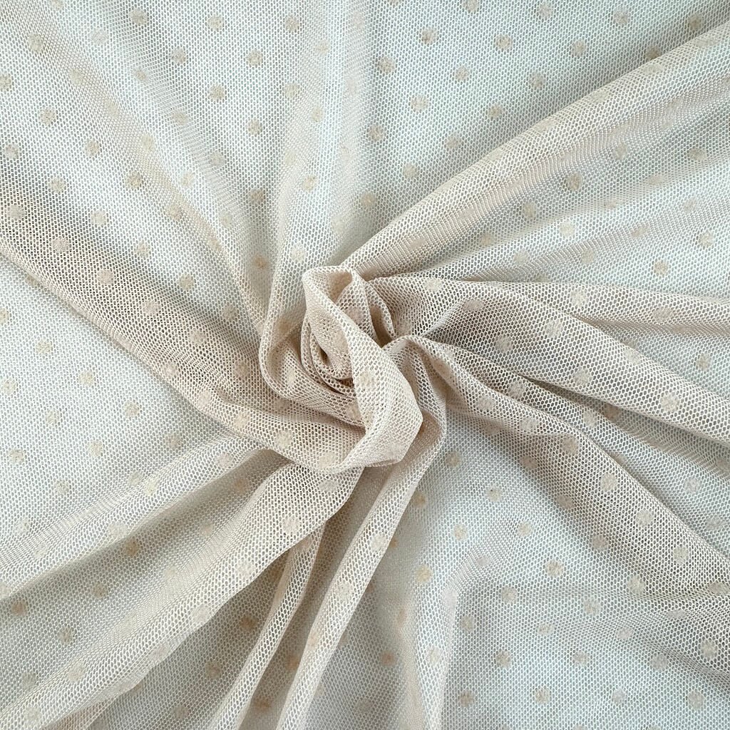 Tyl elastický "4-way" s tečkou - Hnědá mandlová