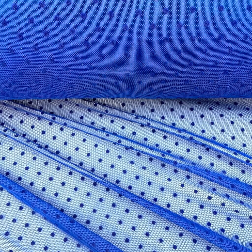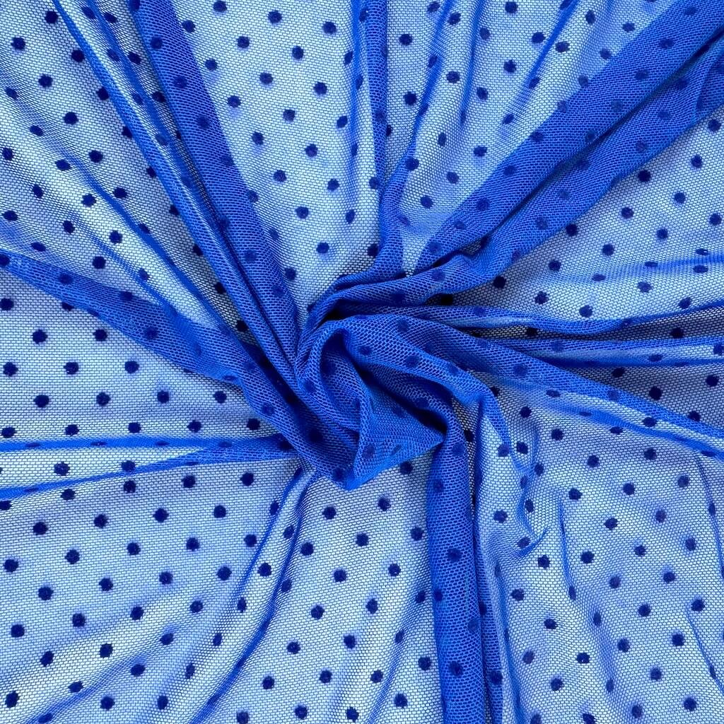 Tyl elastický "4-way" s tečkou - Modrá královská