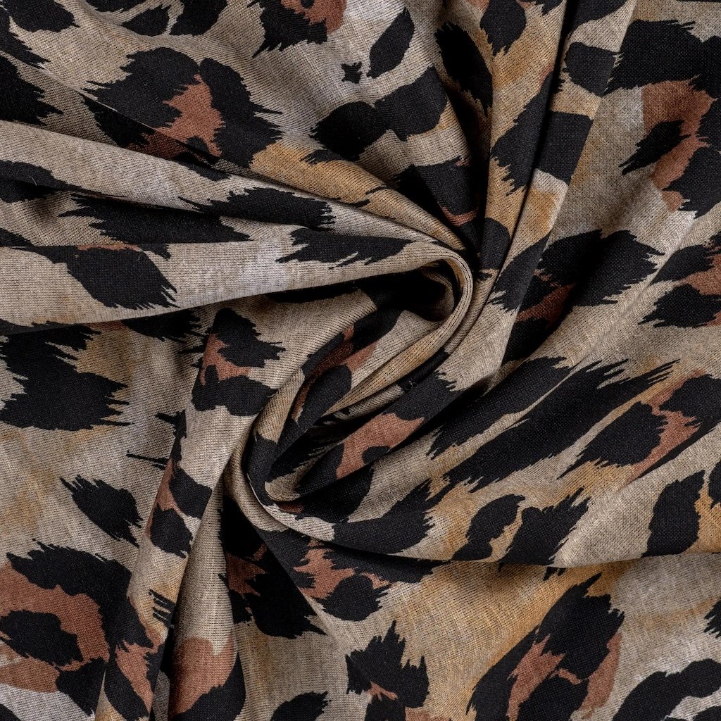 Látka Punta – Leopard je měkký úplet, který kombinuje komfort, vzdušnost a módní motiv – leopardí vzor v pískových tónech. Skvěle se hodí na šaty, sukně, halenky, legíny nebo lehčí vesty s výrazným vzorem.