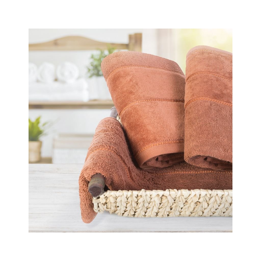 Ručník s ozdobným velurovým pruhem šířka: 30 cm, délka: 50 cm, barva: hnědá, hmotnost: 500 GSM, složení: 100% bavlna; 60% bavlna 40% polyesterDoplňkové parametry