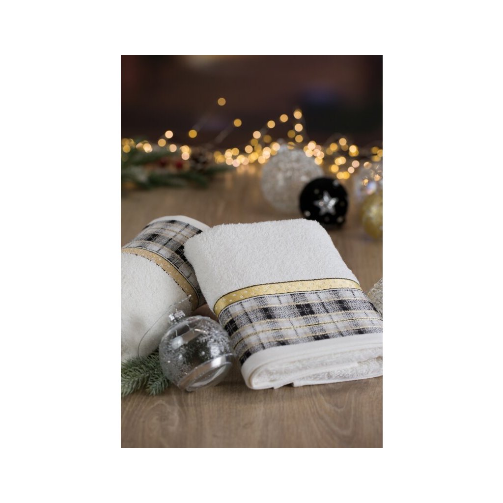 Vánoční ručník s žakárovým lemem a lesklou nití barva: bílá, gramáž: 480 GSM, složení: 100% bavlna; 50% bavlna 50% polyester