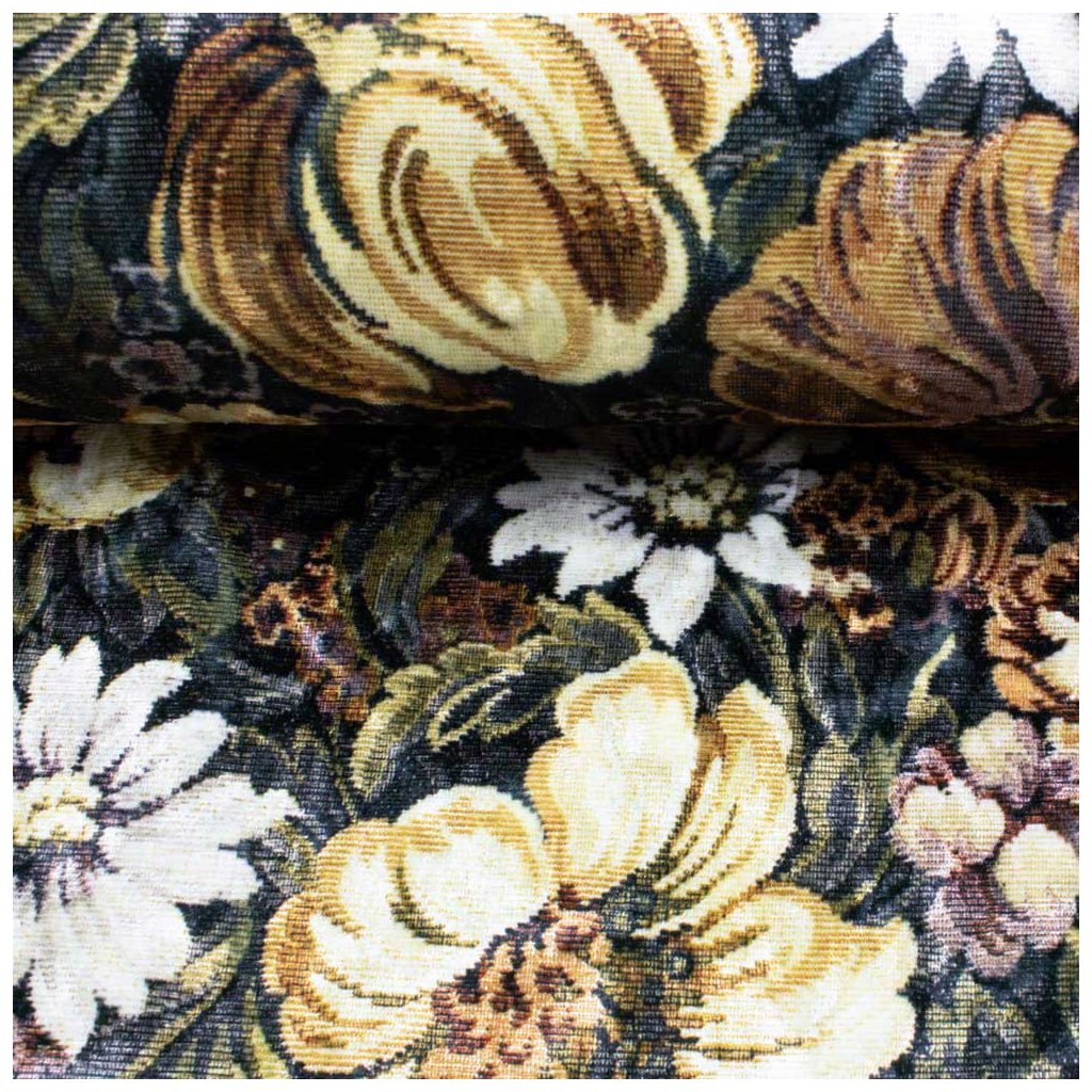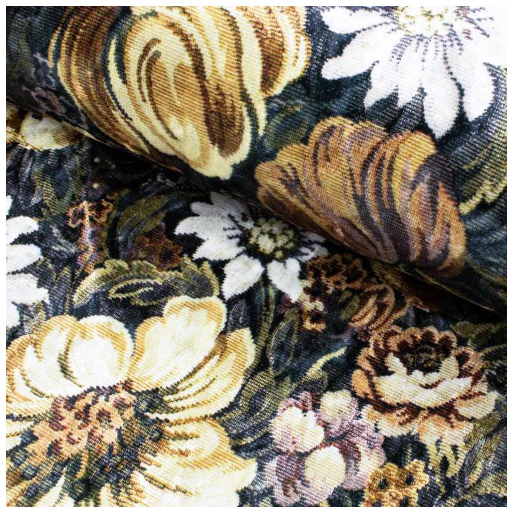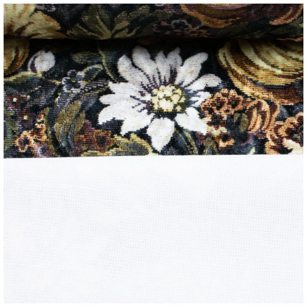 Zamat Velvet digital - Květiny hnědá