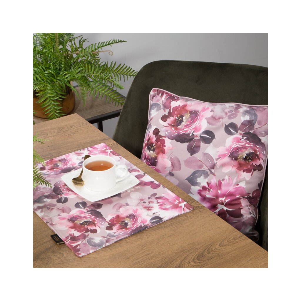 Oboustranná sametová dekorační podložka s květinovým vzorem šířka: 30 cm, délka: 40 cm, barva: pudrově modrá, hmotnost: 280 GSM, složení: 100 % polyesterDoplňkové parametry