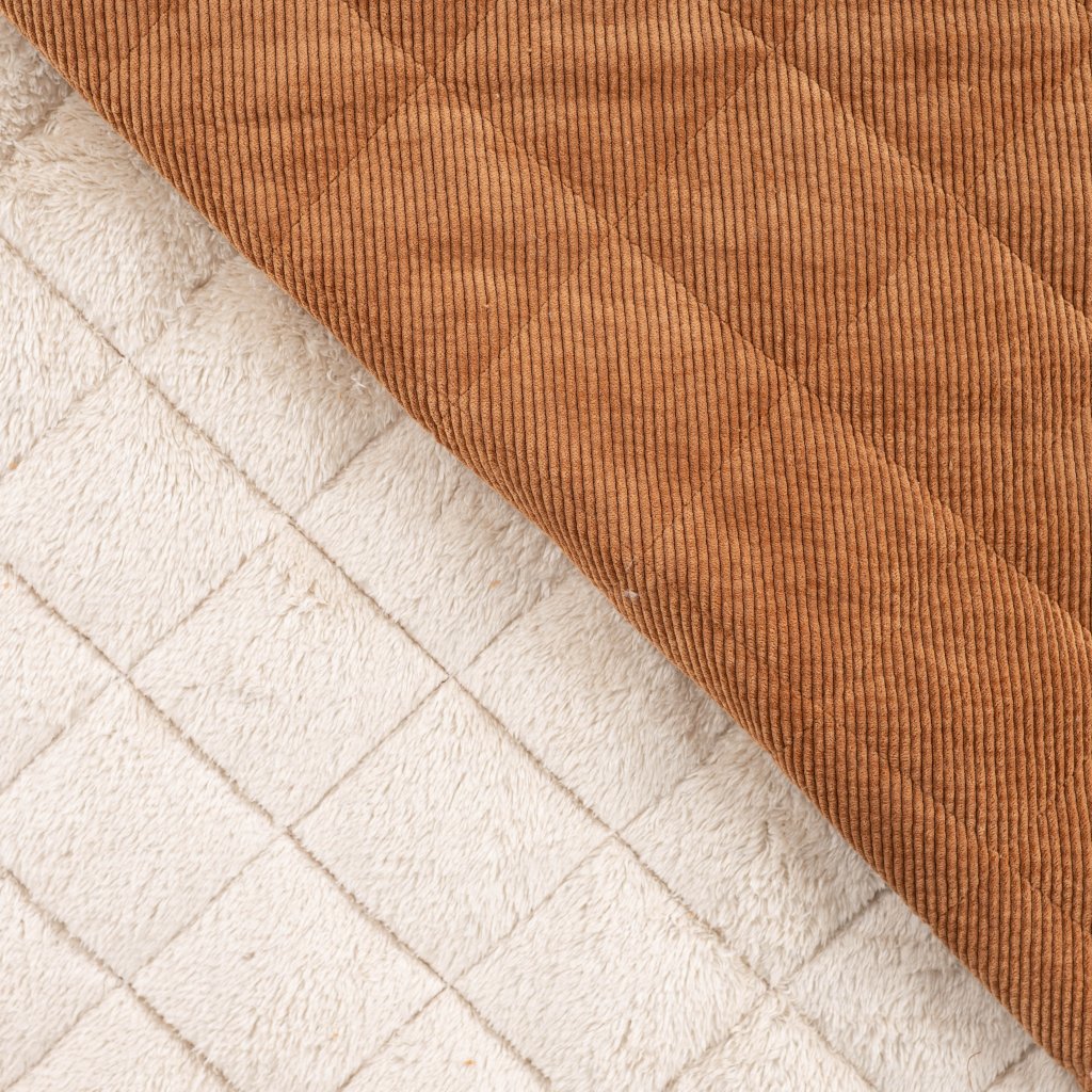 Prémiová quiltovaná manšestrová látka s moderní washed úpravou. Materiál má jemně opraný, přirozený vzhled a příjemně měkký povrch. Díky bonded konstrukci je látka pevná, tvarově stabilní a hřejivá. Prošívání dodává textilii objem a lepší izolační vlastnosti. Díky své struktuře a vlastnostem je látka ideální na hřejivé oděvy, jako jsou bundy, vesty, kabáty, sukně, kalhoty či módní doplňky, ale také na výrobu bytových dekorací, jako jsou přehozy, potahy a sedáky.